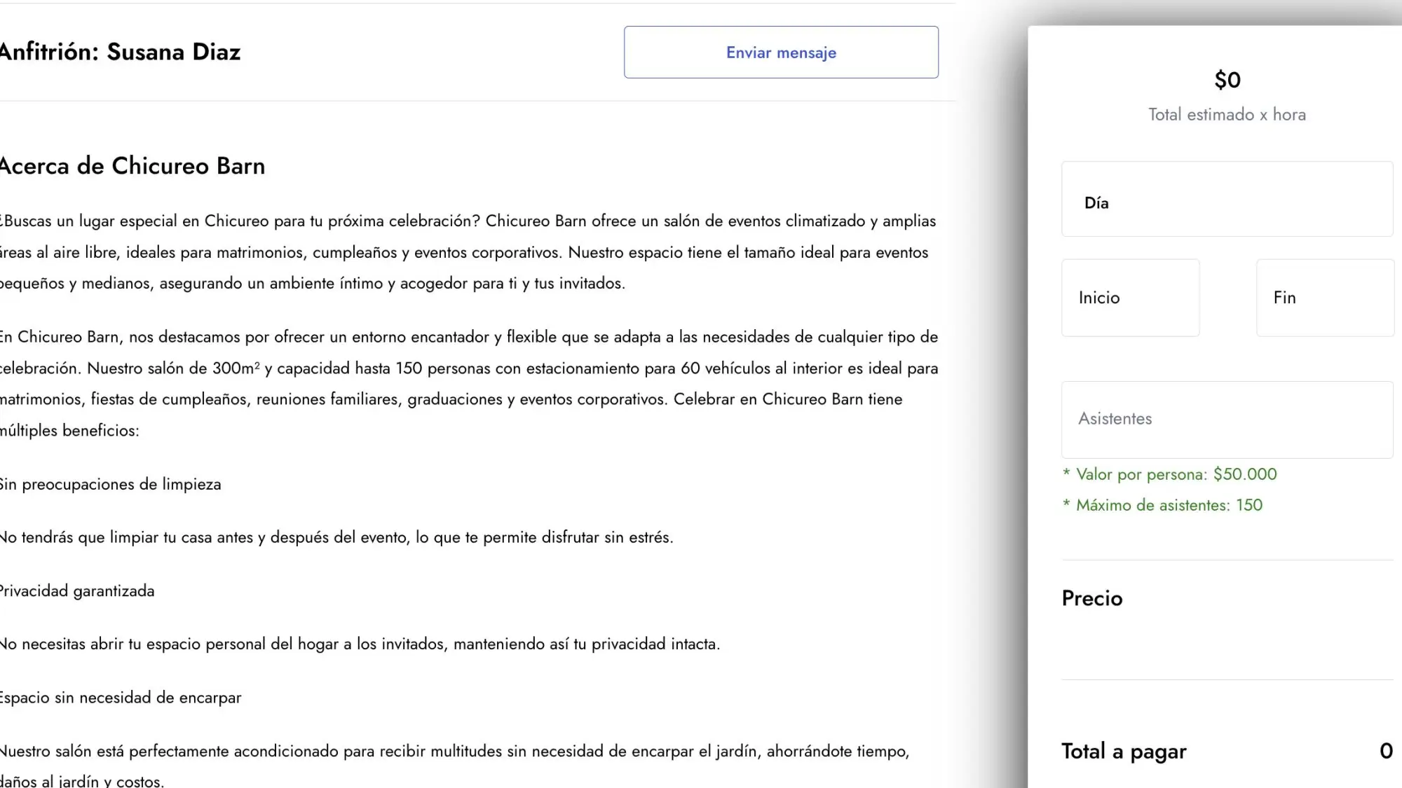 Los usuarios podrán saber el valor del arriendo y consultar por disponibilidad de días, desde la misma plataforma: